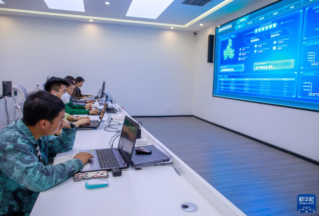 5月23日,工作人員在黔南州智慧黔南安全運營(yíng)中心監控“數字底座”平臺運行情況。
