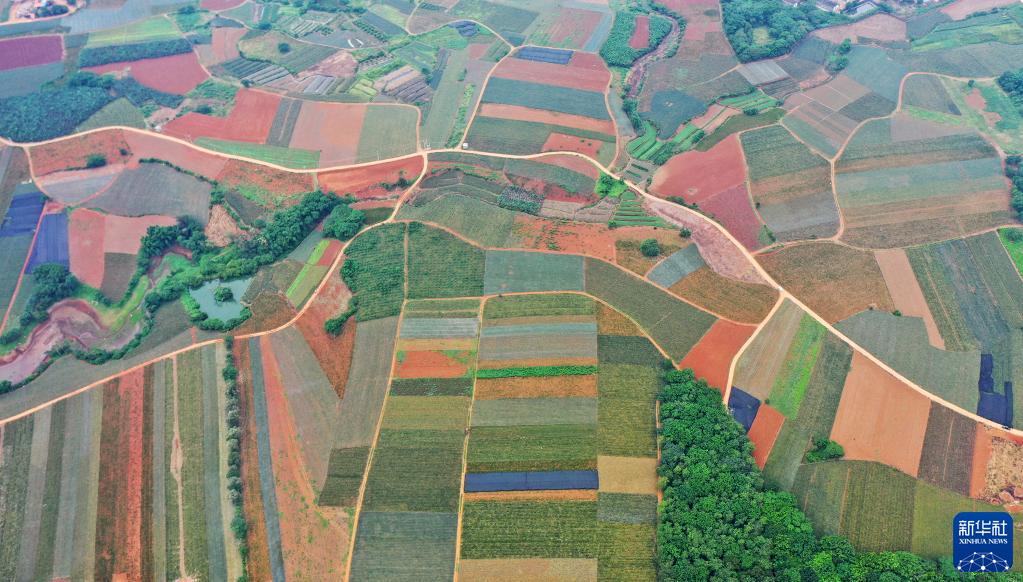 這是在廣東省湛江市徐聞縣曲界鎮拍攝的以菠蘿為主的多種作物農田(5月26日攝,無(wú)人機照片)。