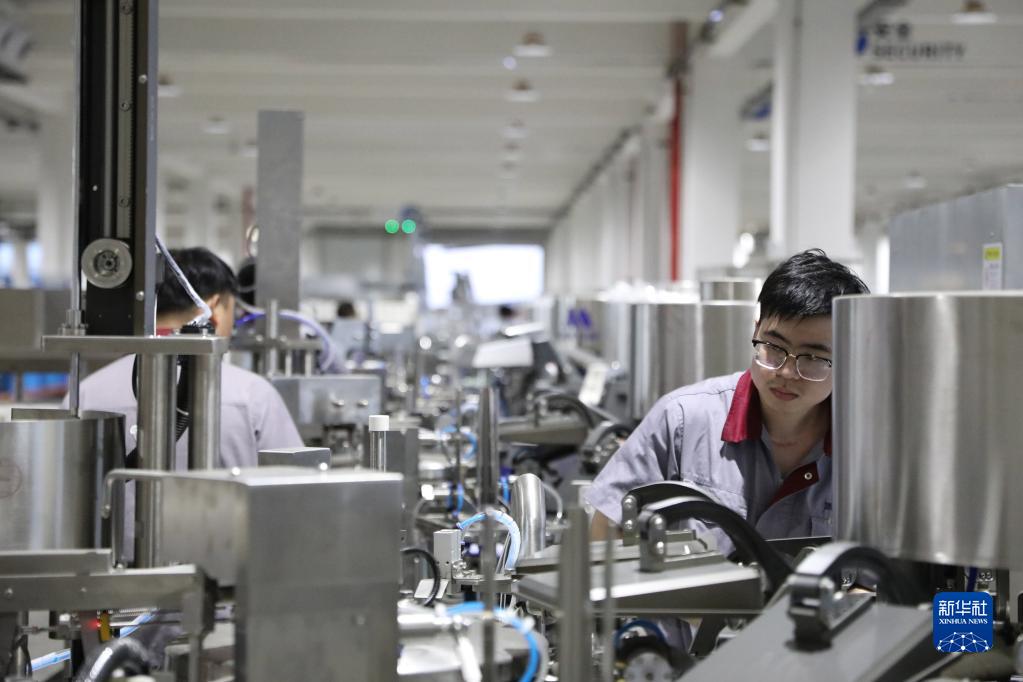5月26日,在位于瑞安的浙江名瑞智能包裝科技有限公司調試車(chē)間,工人調試待售的食品包裝機械。