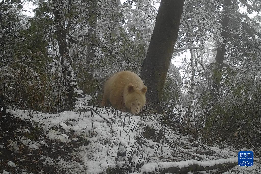 紅外相機拍攝到的白色大熊貓活動(dòng)畫(huà)面(4月16日攝)。
