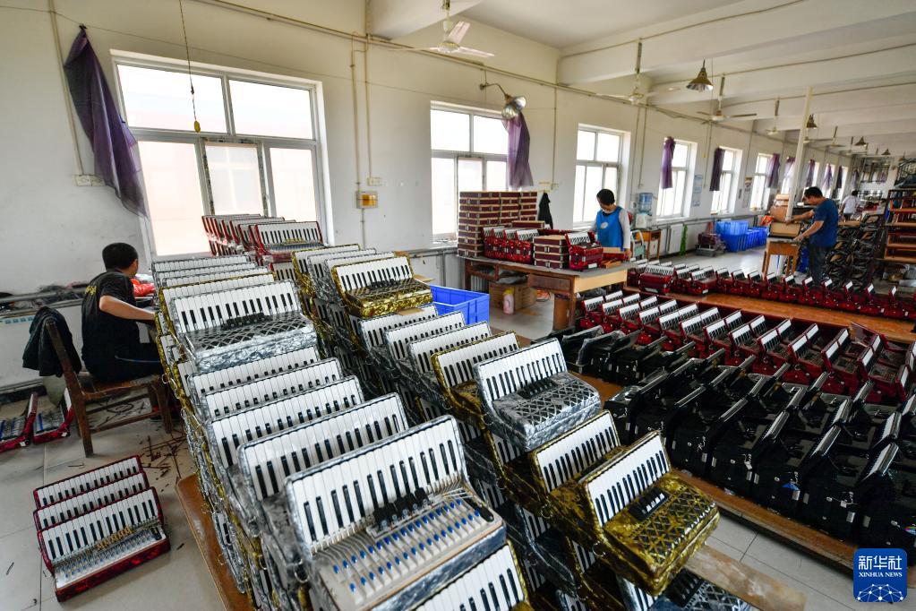 5月25日,在天津鸚鵡樂(lè )器有限公司,工作人員在車(chē)間內裝配手風(fēng)琴。