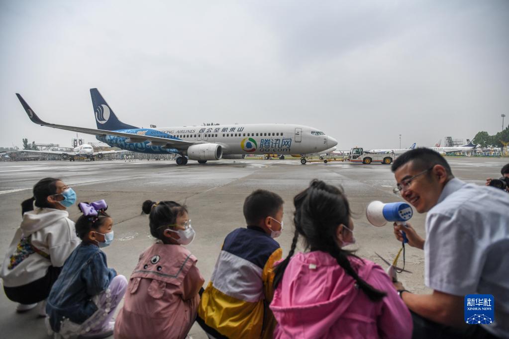 5月27日,孩子們在山東太古飛機工程有限公司參觀(guān)。