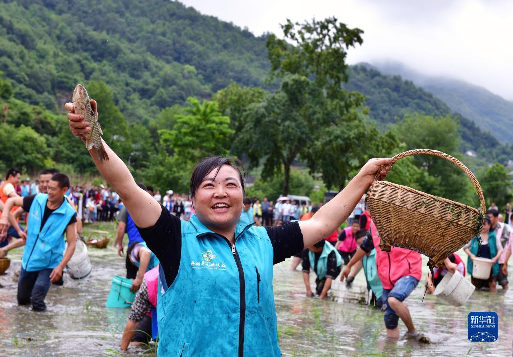 5月27日,秭歸縣九畹溪鎮農民參加摸魚(yú)比賽。