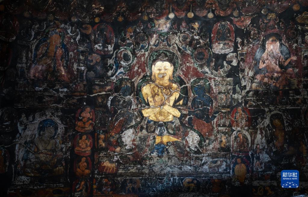 5月26日拍攝的皮央石窟壁畫(huà)局部。