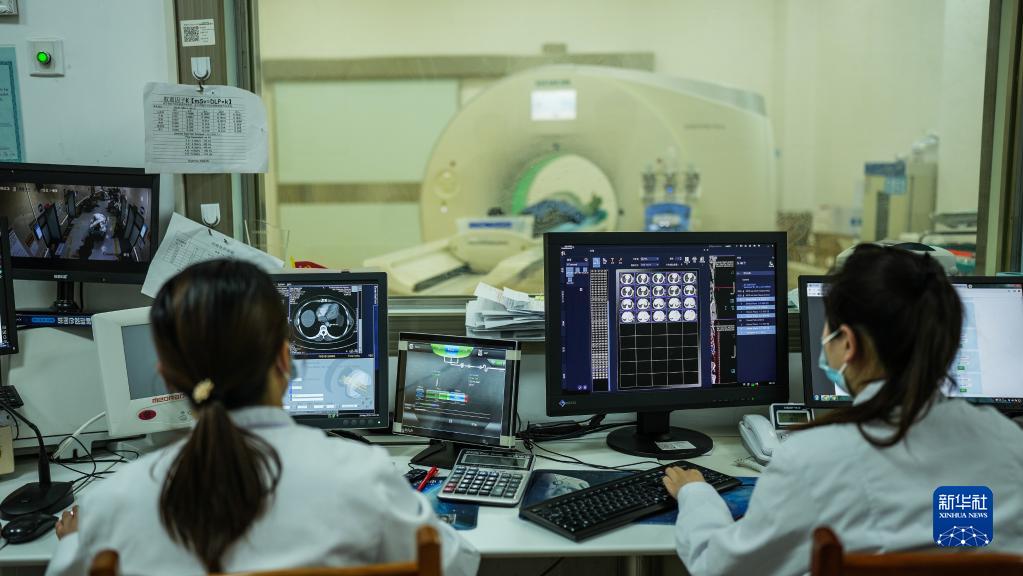 貴州省人民醫院醫學(xué)影像科醫生在對患者進(jìn)行檢查及圖像后處理(5月24日攝)。