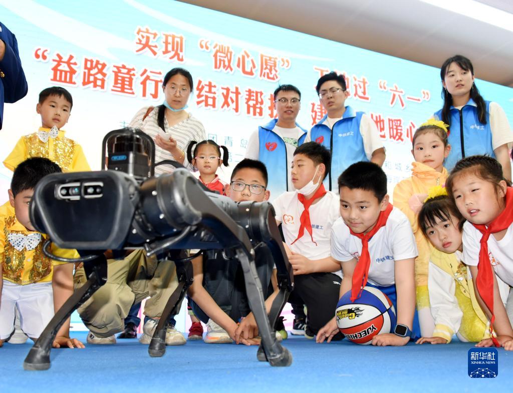 5月28日,機器狗表演吸引小朋友觀(guān)看。