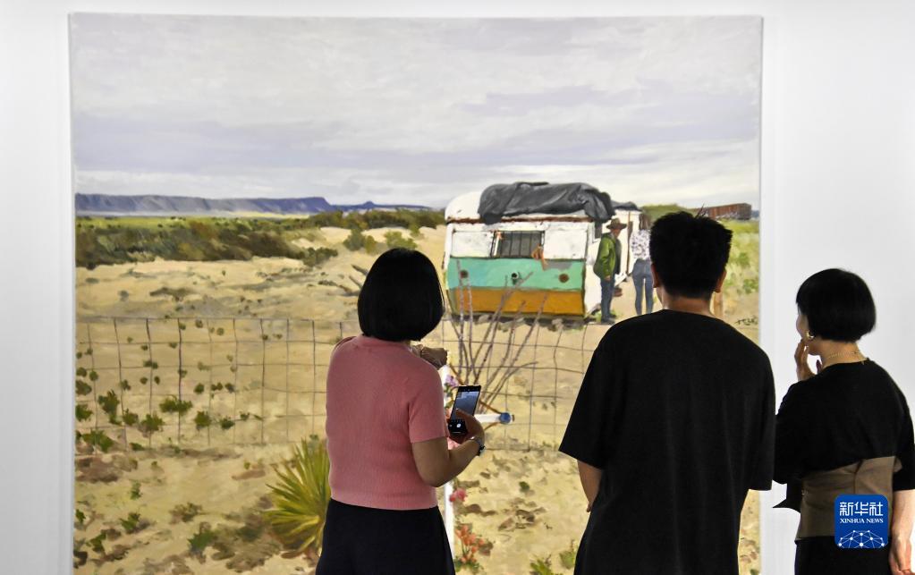 5月28日,市民在國家對外文化貿易基地(北京)的意大利MDC畫(huà)廊觀(guān)看展出的油畫(huà)作品。