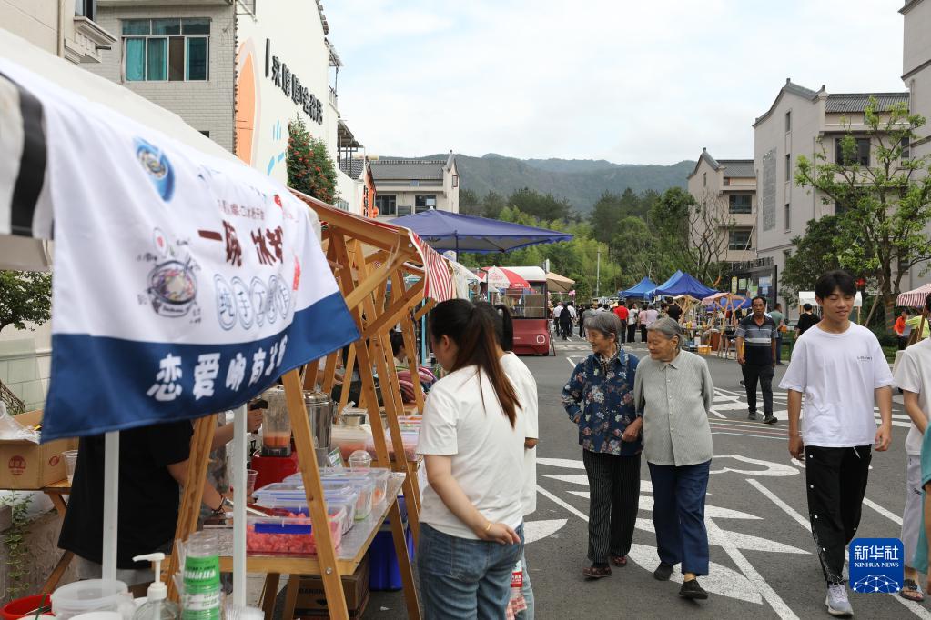 5月27日,在臺州市仙居縣上葉村,人們在鄉野市集上游玩。新華社記者 杜瀟逸 攝