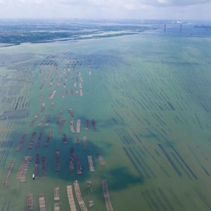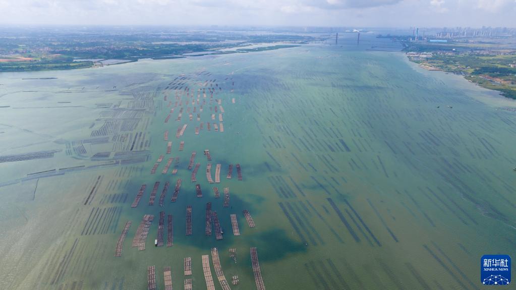 湛江市坡頭區官渡鎮的生蠔養殖場(chǎng)(5月26日攝,無(wú)人機照片)。官渡鎮處在海河交匯處,這里水質(zhì)優(yōu)良,咸淡適宜,富含微生物,為生蠔的生長(cháng)提供了豐富的營(yíng)養。