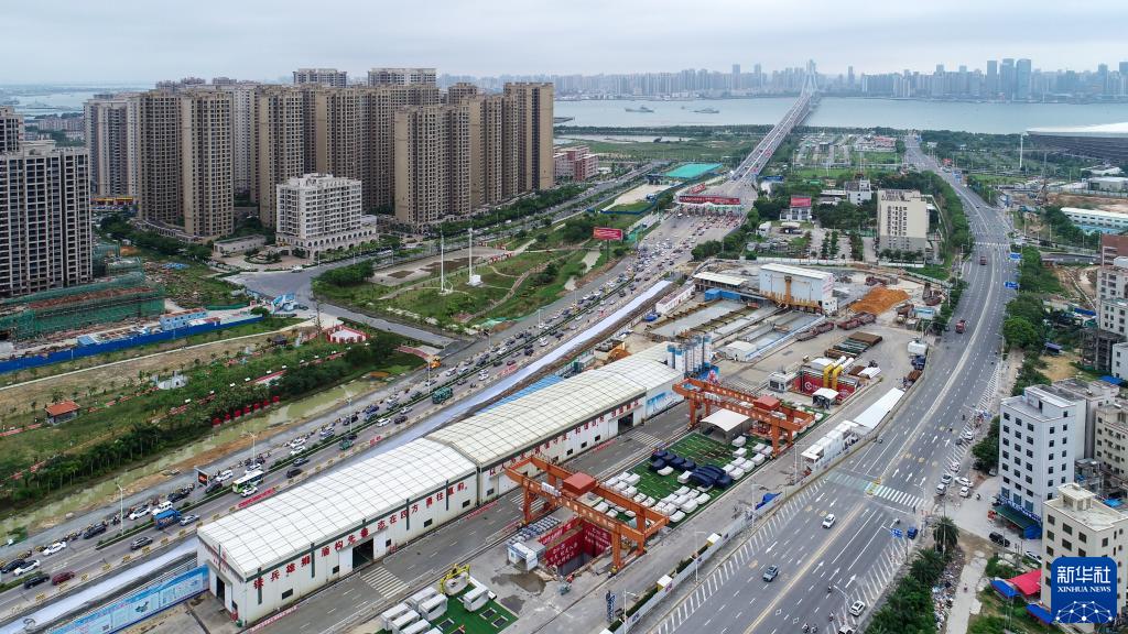 中鐵十四局承建的廣湛鐵路湛江灣海底隧道盾構區間“過(guò)海穿城”(5月24日攝,無(wú)人機照片)。