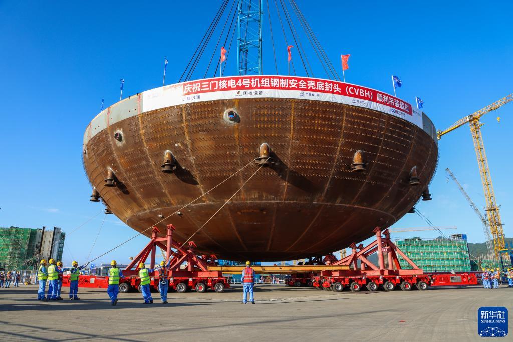 浙江三門(mén)核電二期工程4號機組核島鋼制安全殼底封頭吊裝就位