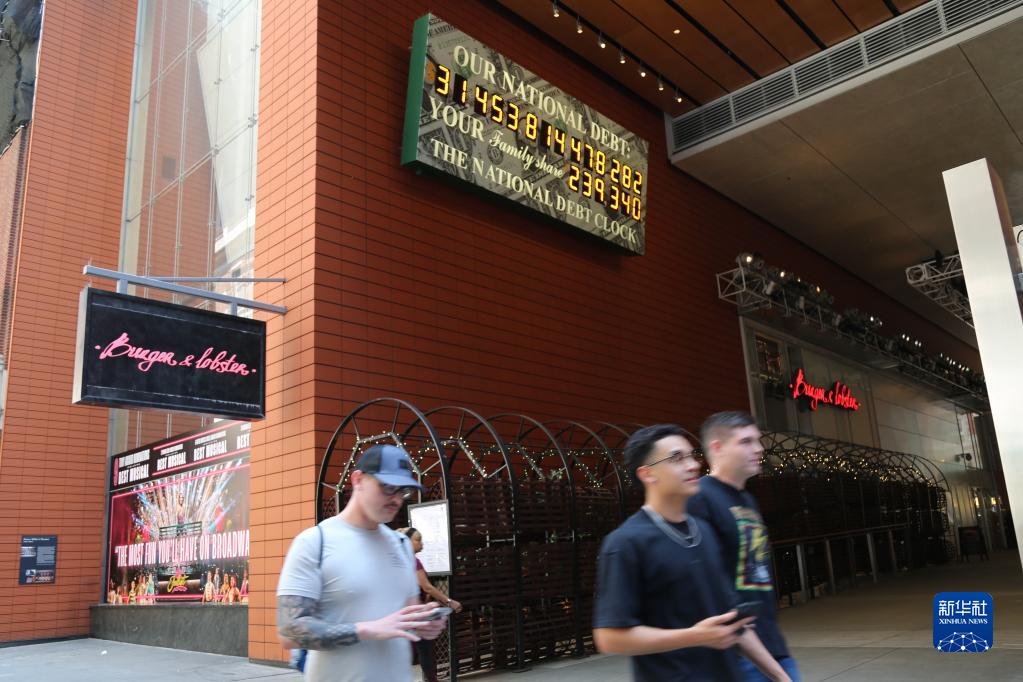 5月29日,人們經(jīng)過(guò)美國紐約曼哈頓的“國債鐘”?!皣鴤姟笔且粋€(gè)大型計數器,它實(shí)時(shí)更新美國的公共債務(wù)總額,并顯示出每個(gè)美國家庭所要負擔的數額。