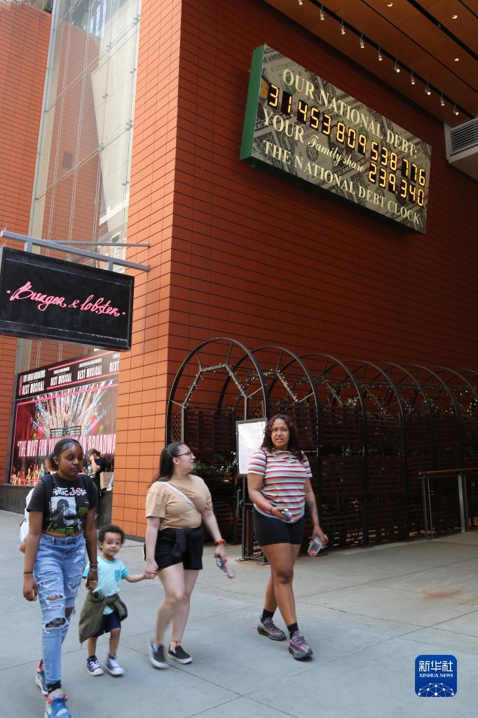 5月29日,人們經(jīng)過(guò)美國紐約曼哈頓的“國債鐘”?!皣鴤姟笔且粋€(gè)大型計數器,它實(shí)時(shí)更新美國的公共債務(wù)總額,并顯示出每個(gè)美國家庭所要負擔的數額。