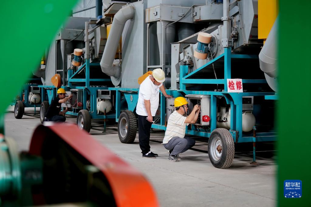 5月30日,河北柏糧糧食儲備有限公司工作人員在檢修移動(dòng)式小麥清理設備。