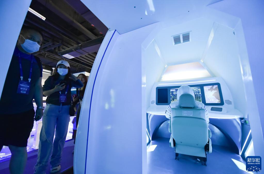 這是5月30日拍攝的科幻產(chǎn)業(yè)新技術(shù)新產(chǎn)品展展出的“高速飛車(chē)”內景。