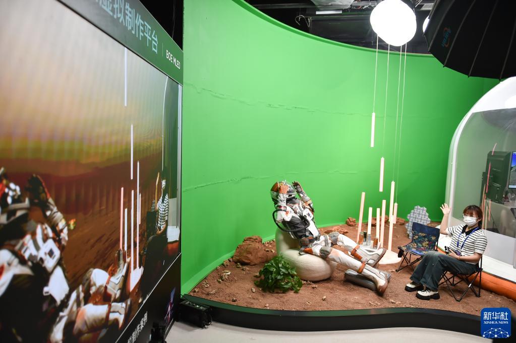 5月30日,在科幻產(chǎn)業(yè)新技術(shù)新產(chǎn)品展上,一名參觀(guān)者在體驗人工智能摳像技術(shù)。