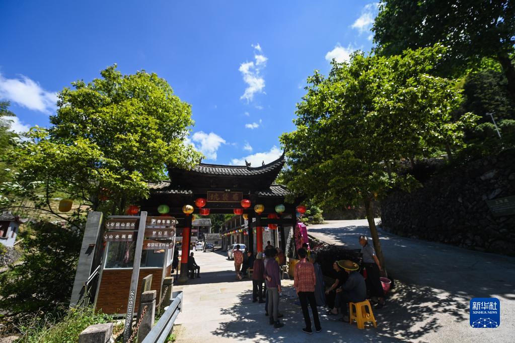 5月30日,村民在布袋坑村口乘涼。