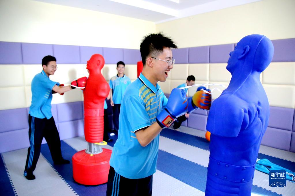 5月30日,湖北省十堰市鄖陽(yáng)區一中高三學(xué)生在學(xué)校的宣泄室內釋放壓力。