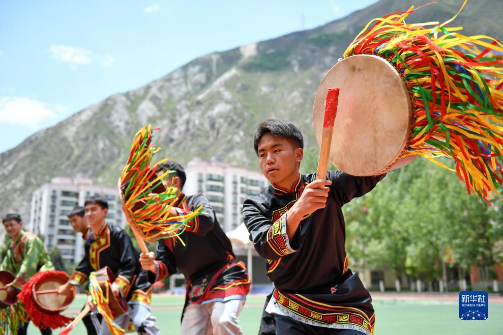 5月30日,四川省汶川中學(xué)高三學(xué)生用羌族羊皮鼓舞“減壓”迎高考。