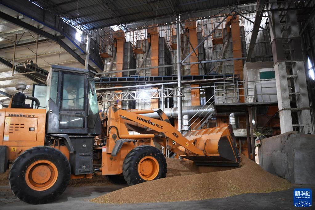 5月30日,在河南省駐馬店市正陽(yáng)縣大林鎮一家烘干加工合作社,工作人員駕駛車(chē)輛將濕麥推入烘干機入料口。