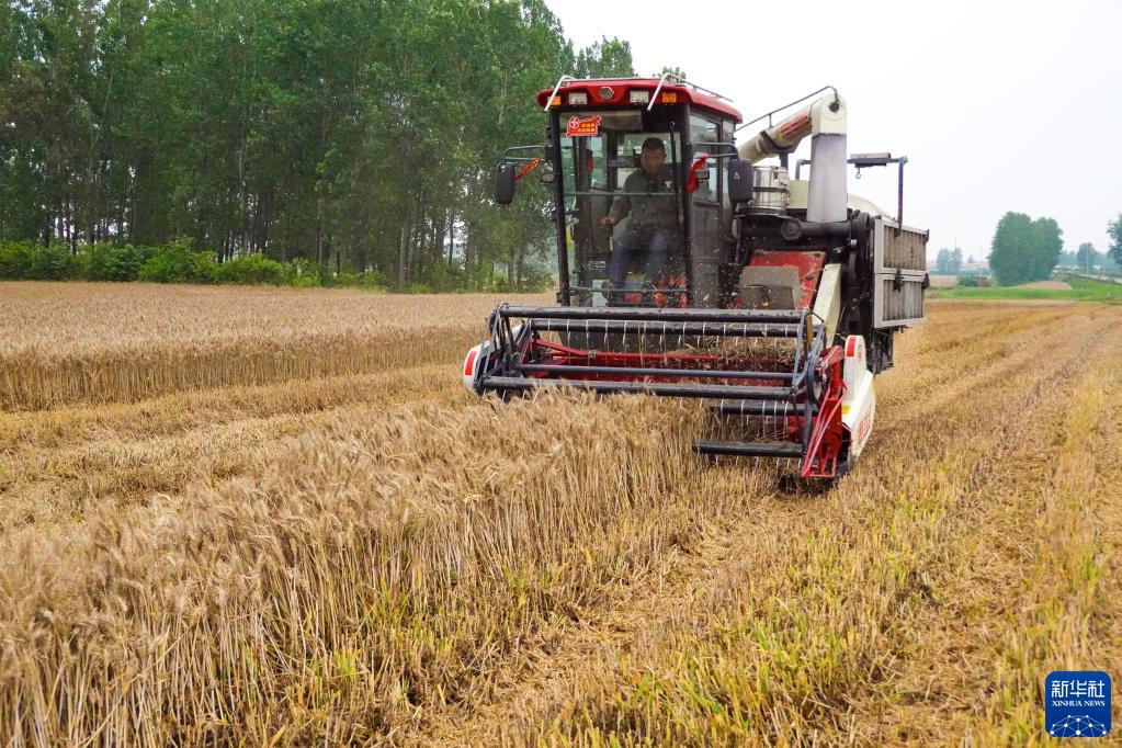 5月30日,河南省正陽(yáng)縣銅鐘鎮小李村村民搶收小麥。