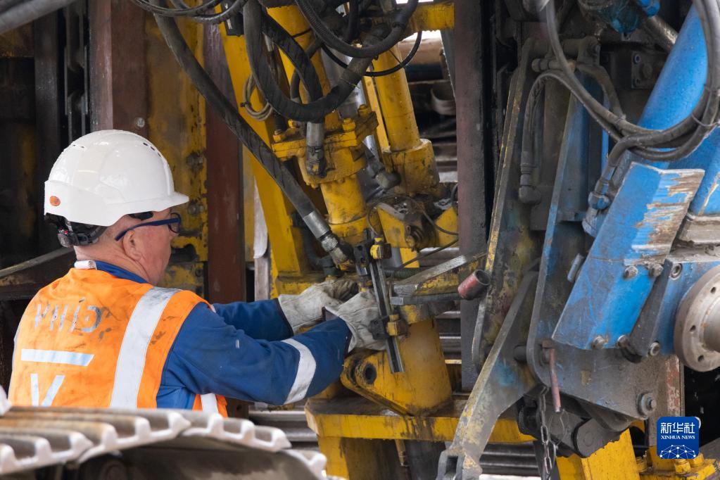 5月30日,在匈塞鐵路匈牙利段孔圣米克洛什-陶什站施工現場(chǎng),工作人員啟動(dòng)鋪軌前檢修鋪軌機組。