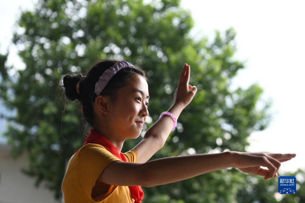 5月29日,伏嶺鎮中心小學(xué)“徽劇童子班”學(xué)生王玉琴在進(jìn)行徽劇展演前的排練。