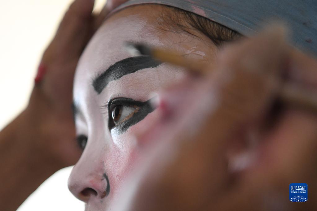 5月30日,民間老藝人在給“徽劇童子班”學(xué)生化妝。