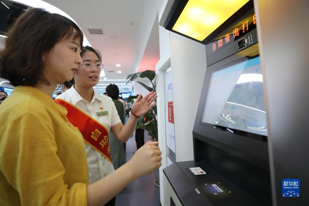 5月30日,在滁州市政務(wù)服務(wù)中心,工作人員協(xié)助市民利用自助服務(wù)機打證明材料。