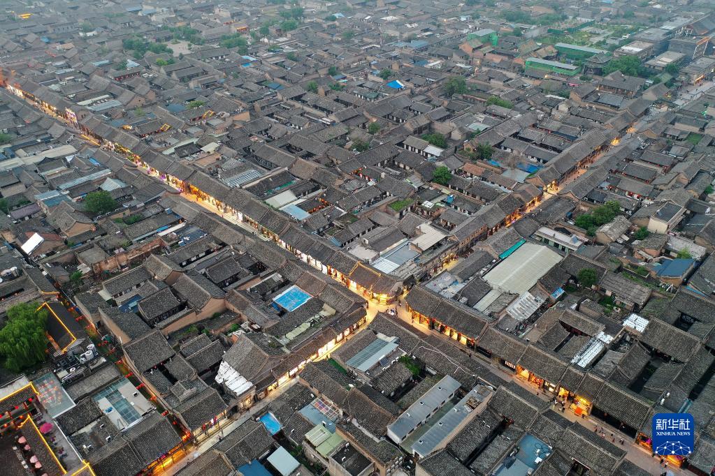 平遙古城一角(5月30日攝,無(wú)人機照片)。