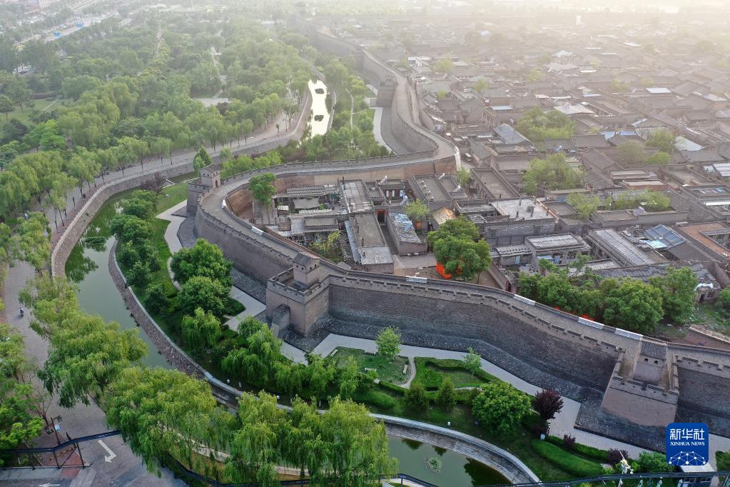 平遙古城一角(5月30日攝,無(wú)人機照片)。