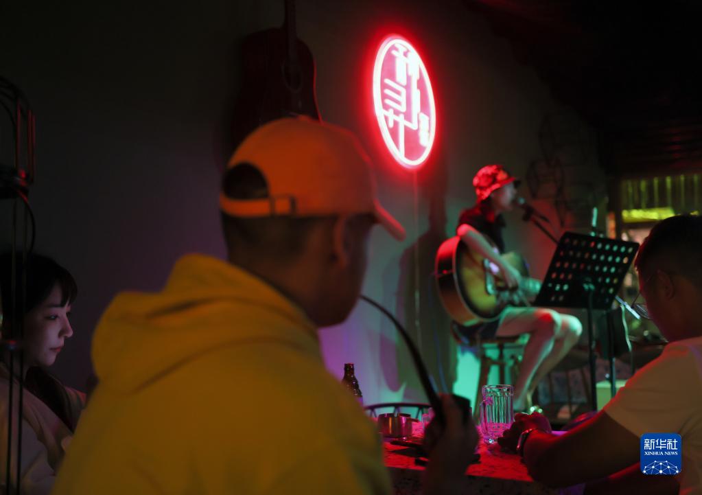 5月30日,在普者黑景區仙人洞村一家酒館,游客在觀(guān)看演出。