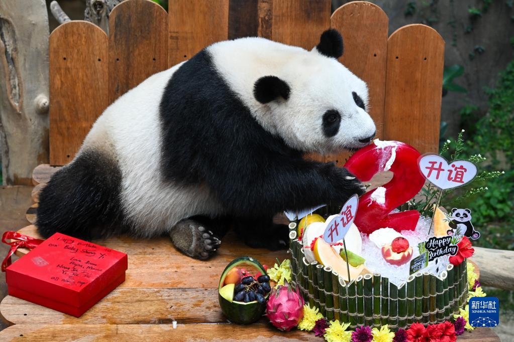 當日,大熊貓寶寶“升誼”迎來(lái)兩歲生日,動(dòng)物園為它準備了特別的生日大餐,眾多民眾前往動(dòng)物園為它慶生?!吧x”是中國旅馬大熊貓“興興”和“靚靚”生下的第三只寶寶,出生于2021年5月31日中馬建交47周年紀念日當天。