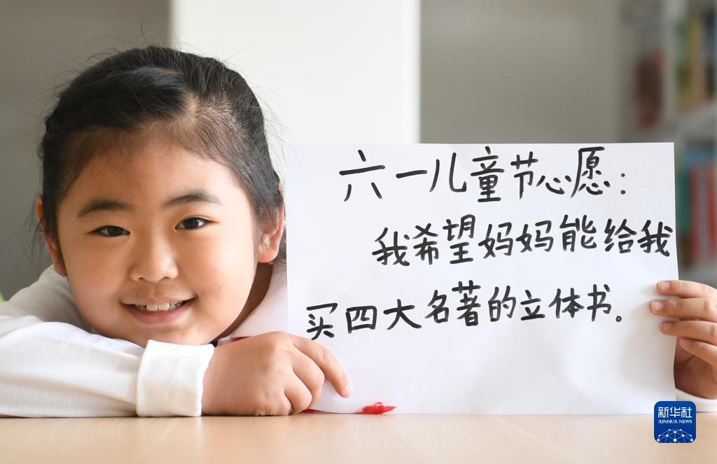 河北雄安新區容東片區容和悅容小學(xué)三年級四班何嘉譯展示“六一”微心愿(5月24日攝)。