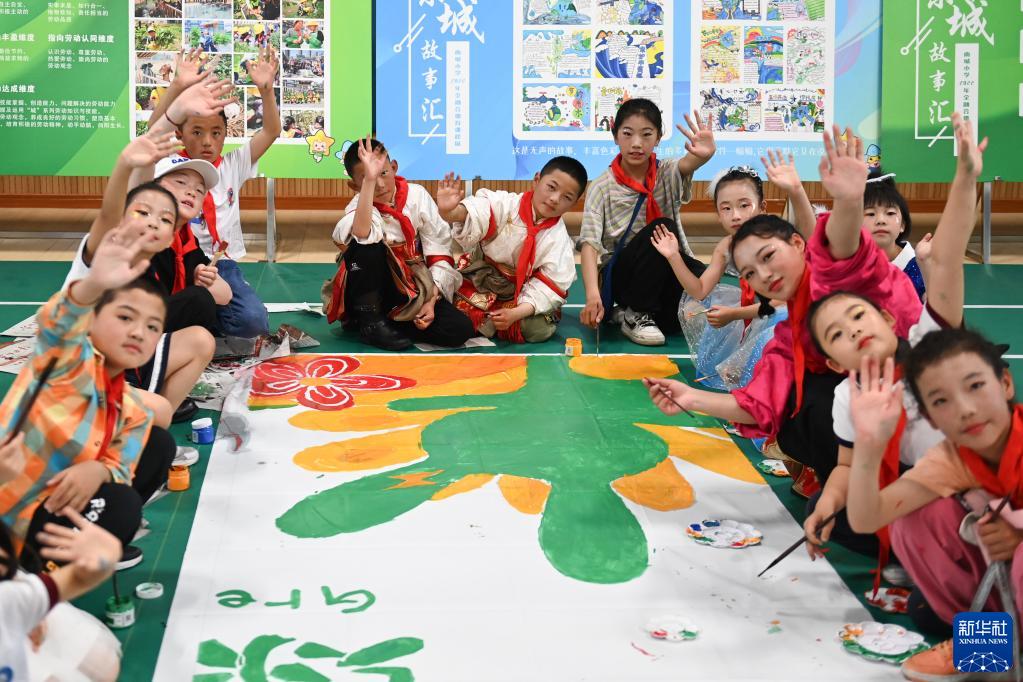 5月31日,青海省玉樹(shù)藏族自治州玉樹(shù)市隆寶鎮中心寄宿制學(xué)校與杭州市蕭山區湘師實(shí)驗小學(xué)教育集團(南城校區)的學(xué)生一同參與巨畫(huà)繪制。