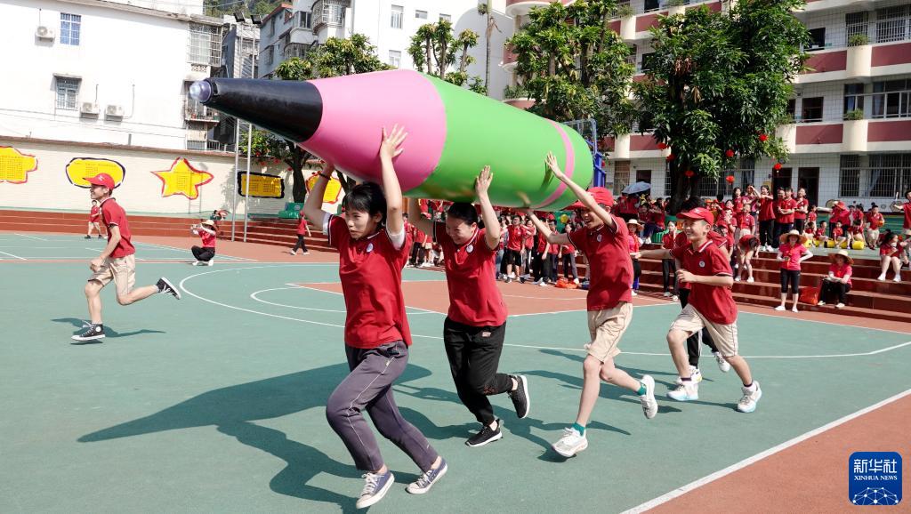 5月31日,廣西河池市金城江區第四小學(xué)學(xué)生參加“神筆馬良”趣味游戲。