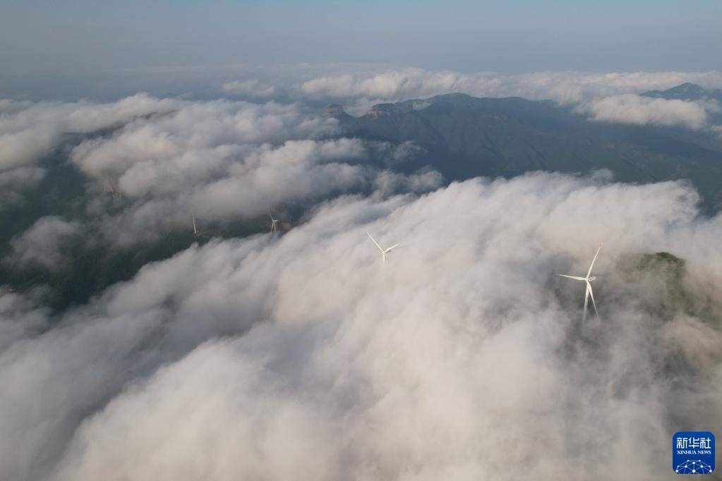 5月30日在河北省內丘縣拍攝的太行山區云海景觀(guān)(無(wú)人機照片)。