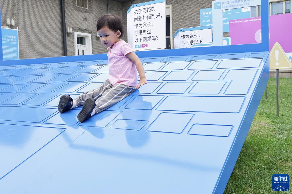 5月31日,小朋友在活動(dòng)上體驗互動(dòng)藝術(shù)裝置。