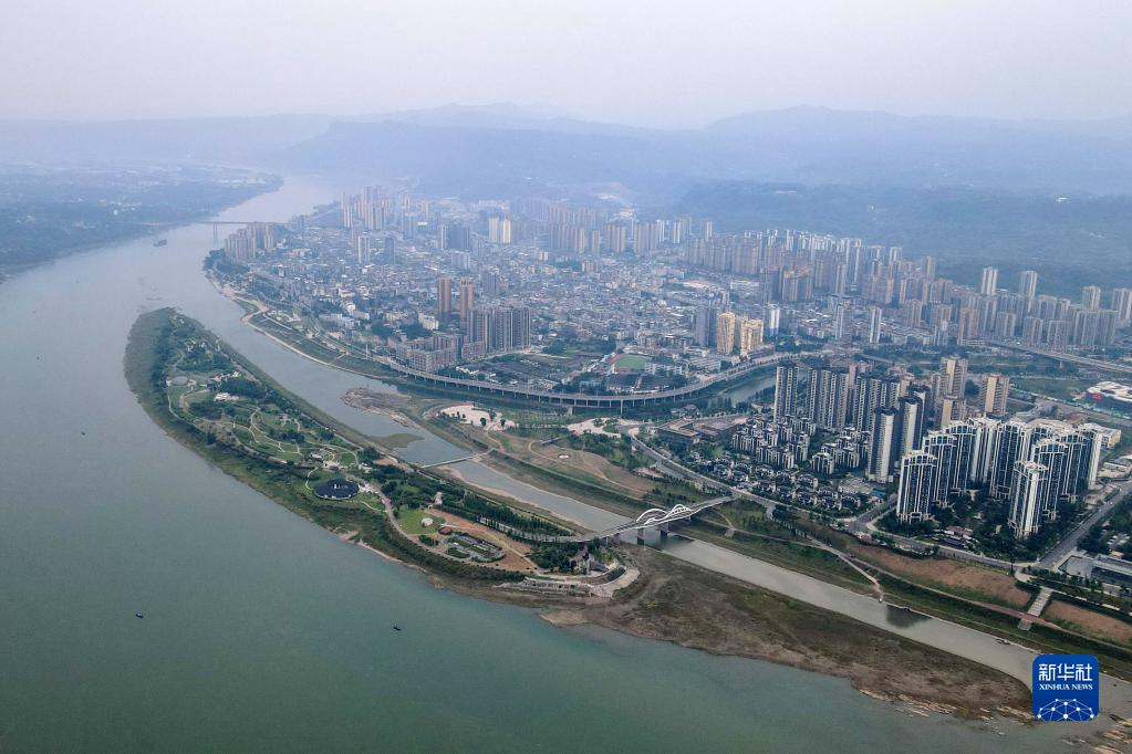 這是5月31日拍攝的位于四川省宜賓市江安縣的長(cháng)江竹島(無(wú)人機照片)。