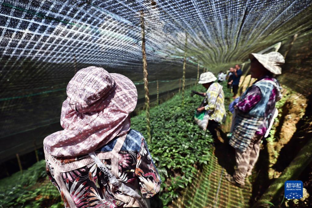 5月31日,在文山州西疇縣蓮花塘鄉一個(gè)三七種植基地,農民在給三七施肥。