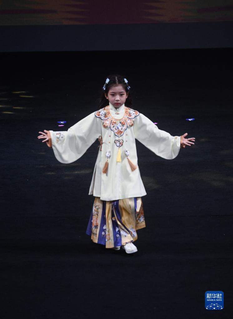 6月1日,小模特們在童裝時(shí)尚周的童裝時(shí)尚走秀上展示傳統服飾。