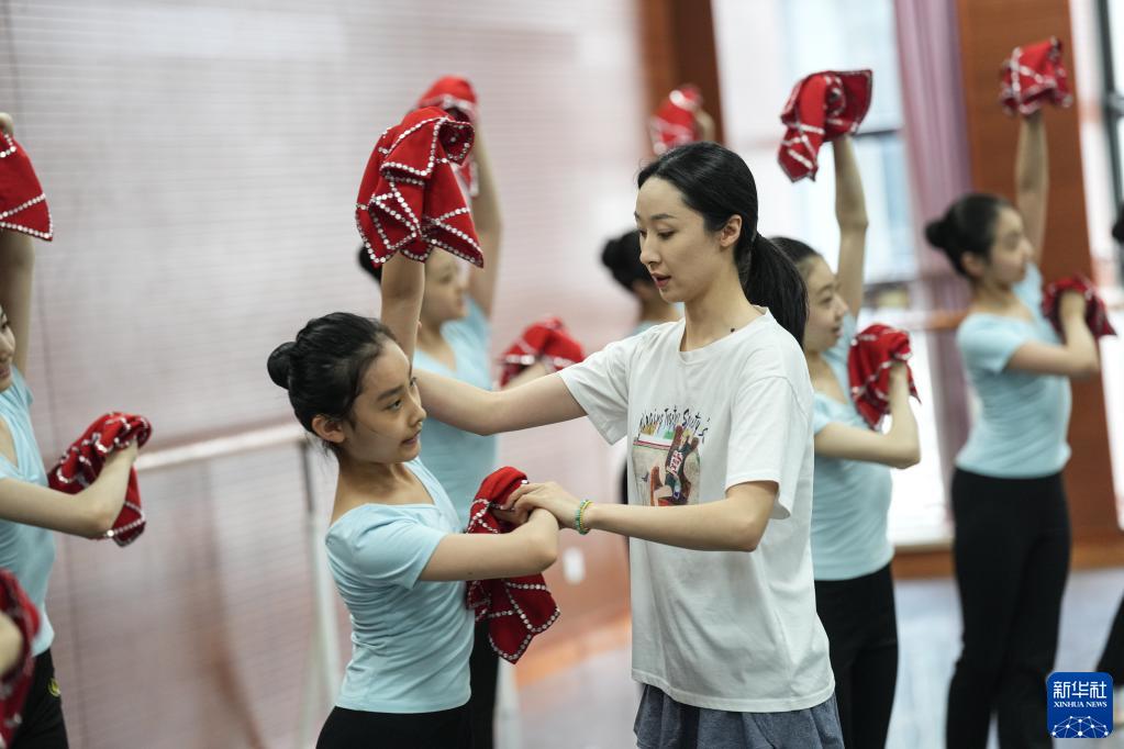 5月30日,遼寧芭蕾舞團附屬芭蕾舞蹈學(xué)校的老師在為二年級的學(xué)生糾正動(dòng)作。