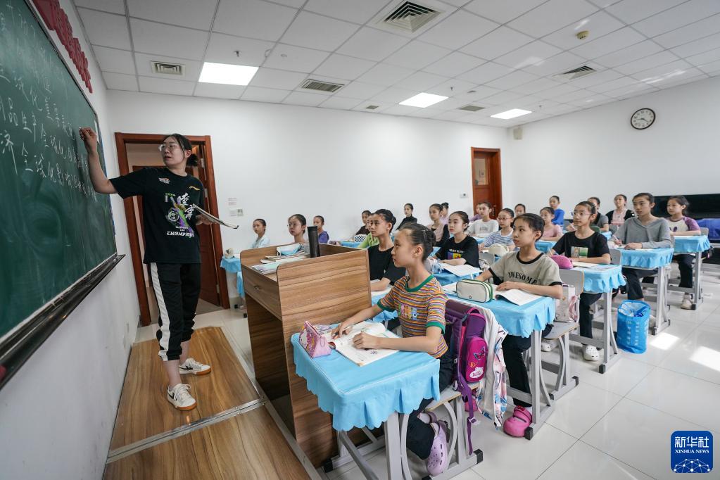 5月30日,遼寧芭蕾舞團附屬芭蕾舞蹈學(xué)校二年級的學(xué)生在上文化課。