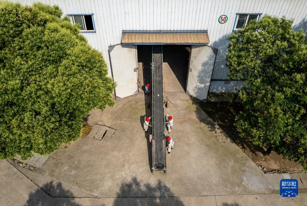 6月1日,位于夏邑縣會(huì )亭鎮的河南世通谷物有限公司夏邑直屬庫員工在挪運傳輸設備(無(wú)人機照片)。