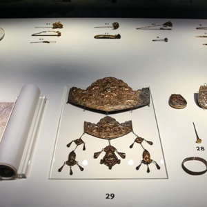 這是6月1日在韓國首爾歷史博物館拍攝的“海上銀珠·璀璨華光——上海市歷史博物館館藏銀器展”展品。