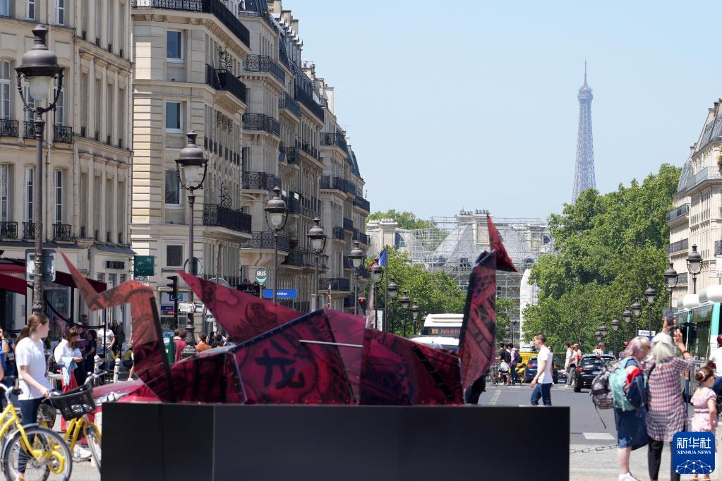 這對“中國龍”折紙造型的雕塑以及巨型畫(huà)作,均由法國藝術(shù)家格溫德琳·菲納·德維萊納創(chuàng )作完成。她表示龍在中國文化里具有智慧、力量和福氣的寓意。她希望帶上她設計的彩龍,從巴黎的先賢祠“起飛”,作為中法兩國和平和友誼的象征,最終于2024年“飛”到中國。