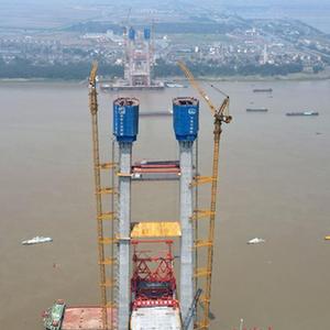 當日,由中鐵大橋局承建的京臺高速銅陵長(cháng)江公鐵大橋4號主塔順利封頂,跨江主橋首節段鋼梁開(kāi)始架設。該橋是一座雙層斜拉—懸索協(xié)作體系大橋,主跨988米,具有高速公路、城際鐵路、貨運鐵路三種過(guò)江功能。