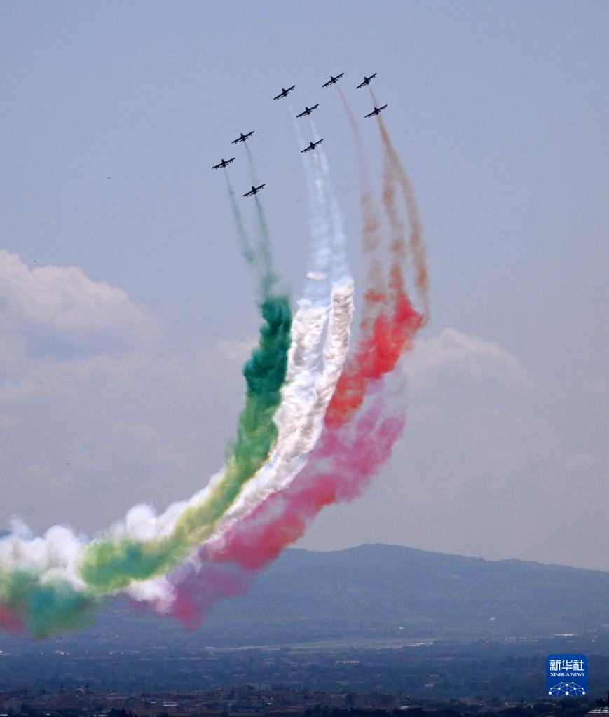 6月2日,意大利“三色箭”特技飛行表演隊在羅馬參加共和國日慶祝儀式。