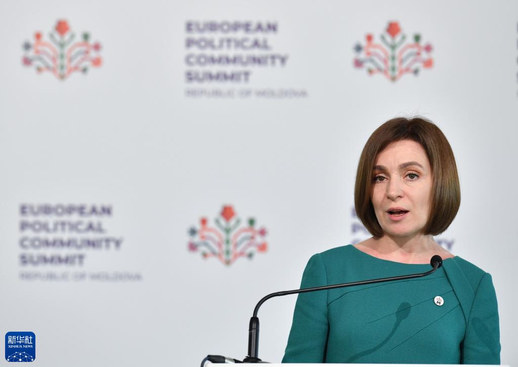 6月1日,在摩爾多瓦布爾博阿克,摩爾多瓦總統桑杜在第二屆歐洲政治共同體領(lǐng)導人會(huì )議后參加新聞發(fā)布會(huì )。
