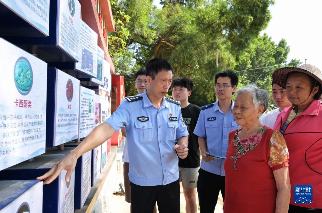 6月4日,在廈門(mén)市翔安區大宅社區,民警向社區群眾介紹毒品的性質(zhì)、種類(lèi)、危害及防范措施。